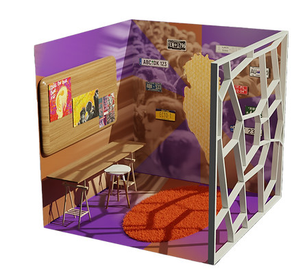 Psychedelic colours to showcase contrasting personalities of the person. Lesser furniture but more graphics to enhance the visual of the room.